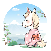 Record your peaceful thoughts and inspirations in this notebook featuring a horse in a pastel kimono gazing at a mountain. A serene companion for your reflections.